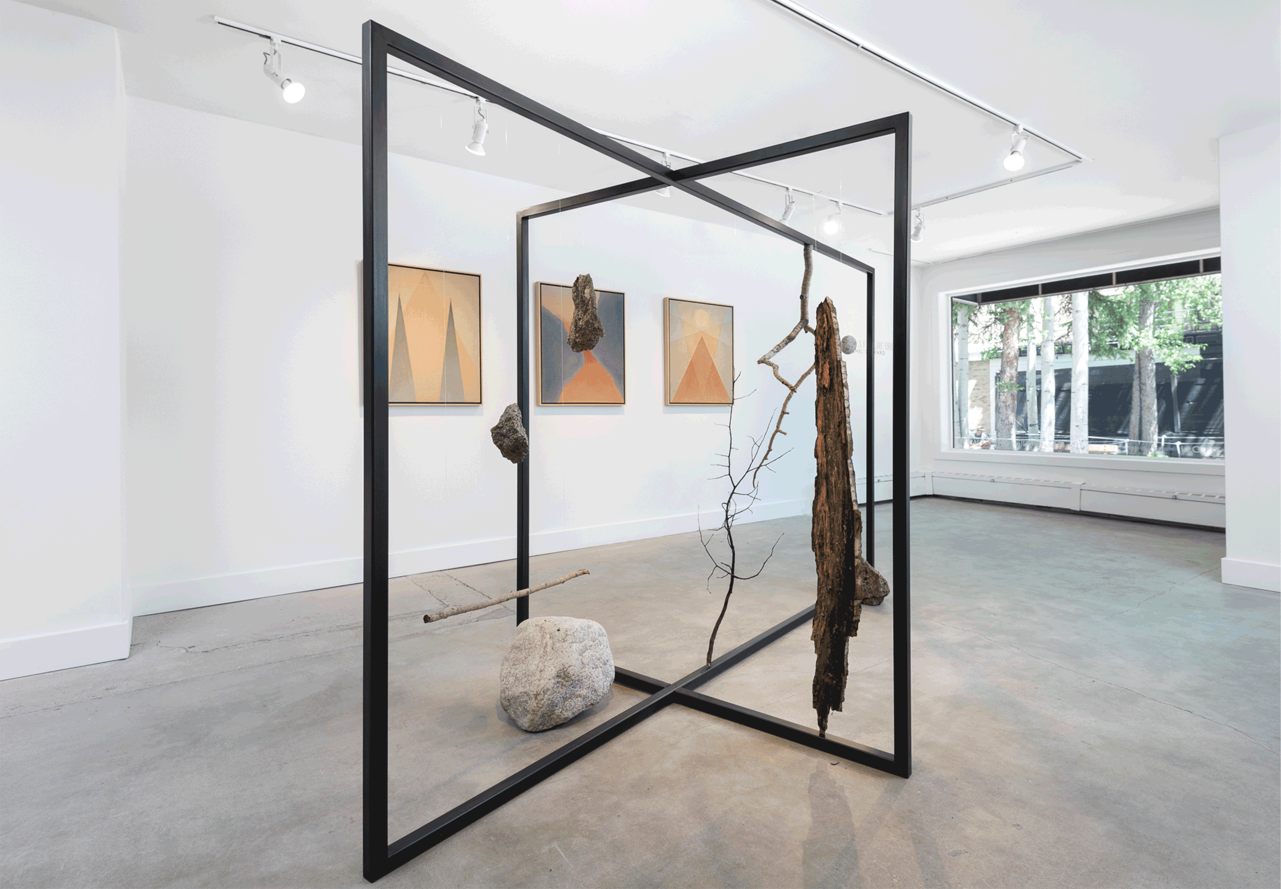 In a solo exhibition at Hexton Gallery, Rachel Garrard presented a collection of new paintings and a site-specific sculpture. The steel frame’s production was facilitated by Anderson Ranch in Snowmass, CO, and Garrard later assembled the sculpture to realize her creative vision using found objects from the surrounding landscape.